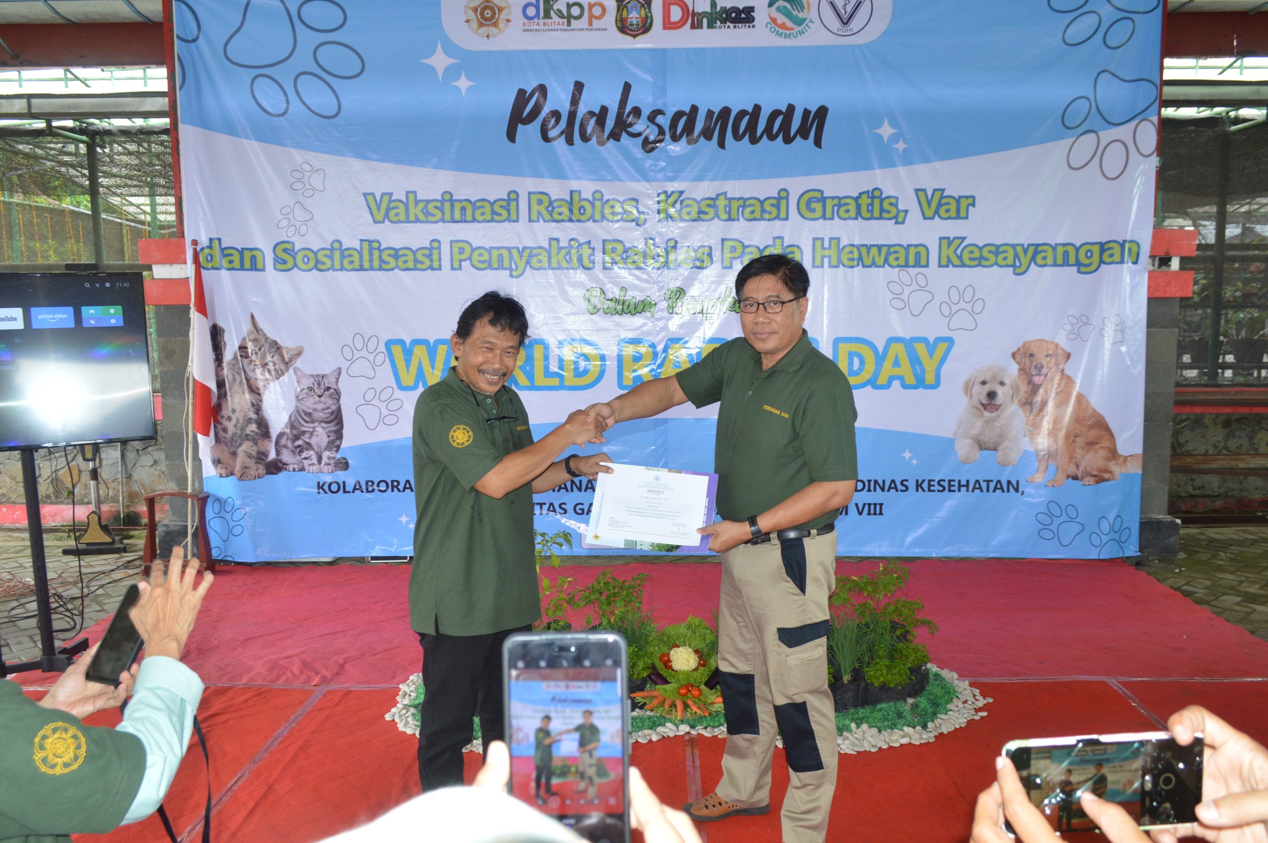Dalam rangka memenuhi tri dharma perguruan tinggi, Program Studi Doktor Sains Veteriner Fakultas Kedokteran Hewan Universitas Gadjah Mada menyelenggarakan kegiatan Pengabdian Masyarakat berkolaborasi dengan Dinas Ketahanan Pangan dan Pertanian Kota Blitar dengan tema “Pengabdian Masyarakat ”Penyuluhan, Pemeriksaan Kesehatan Hewan dan Vaksinasi Rabies dalam Rangka World Rabies Day dan Dies Natalis Fakultas Kedokteran Hewan Universitas Gadjah Mada ke-79”di Kota Blitar, Jawa Timur”.